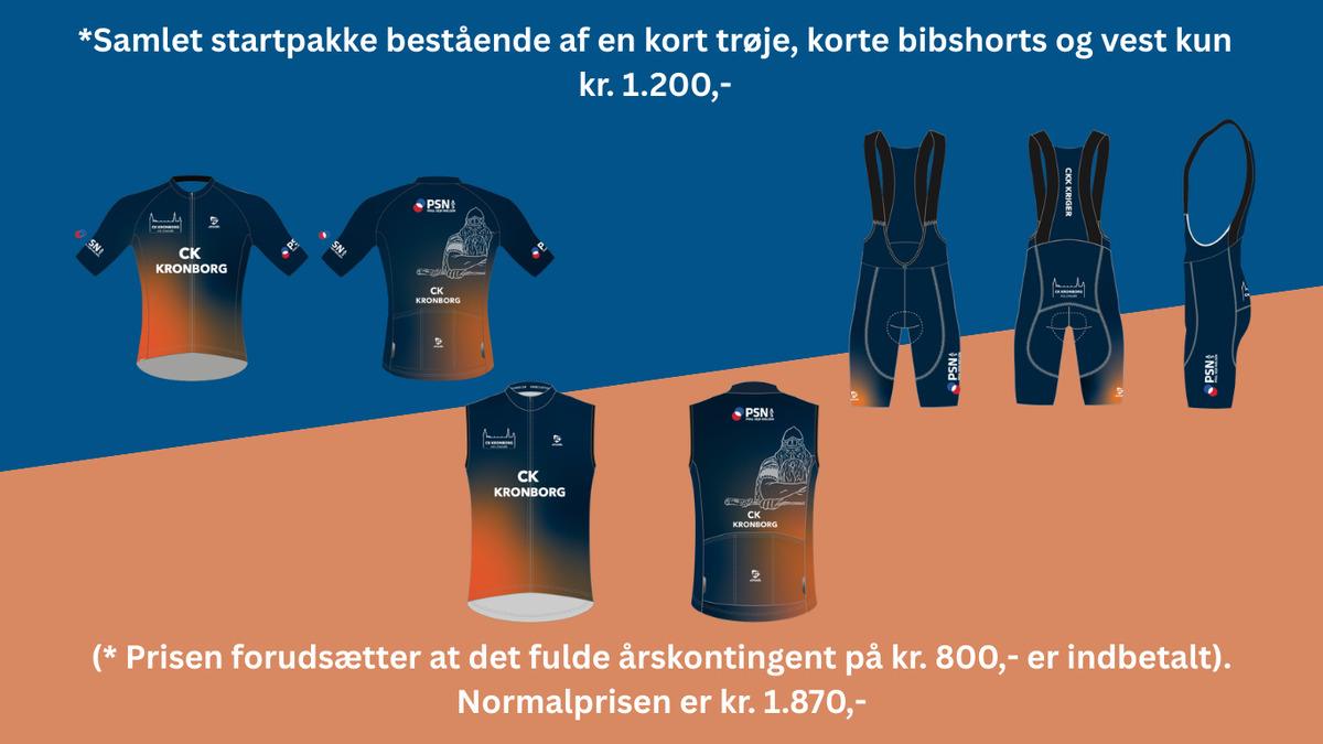 Som nyt medlem i klubben får du tilskud til startpakken bestående af en kortærmet sommer trøje, korte bukser (bibshorts) med den bedste Carbon Pro pude der findes samt en vindvest med 3 lommer.