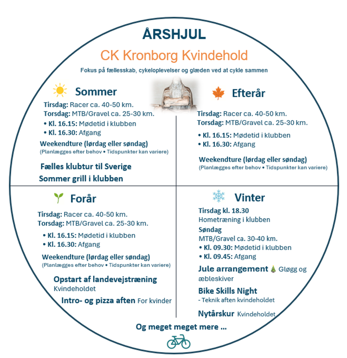 Vi skaber et varmt og engageret fællesskab, hvor både nye og erfarne ryttere føler sig hjemme. Hos os handler det om at dele de gode oplevelser, løfte hinanden, styrke sammenholdet og selvfølgeligt få en masser motion og gode sociale cykelture sammen.